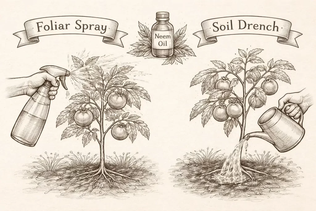 Foliar Spray is the most popular way to go. You spray diluted neem oil right onto the leaves – both the top and bottom sides. This helps get rid of soft-bodied pests like aphids, spider mites, and whiteflies. It also treats fungal problems like powdery mildew and black spot.